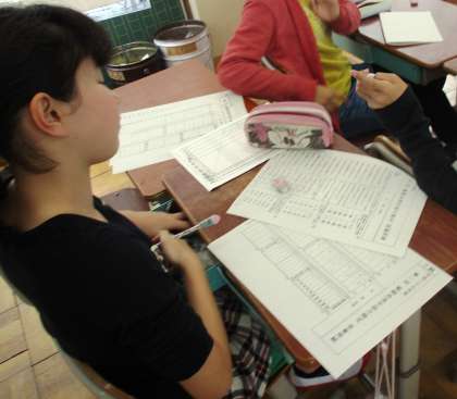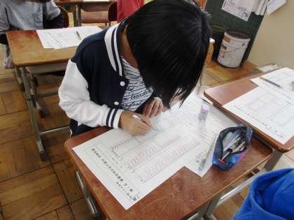 明日は漢字検定・計算検定です。受ける人も受けない人も練習問題に取り組んでいます。