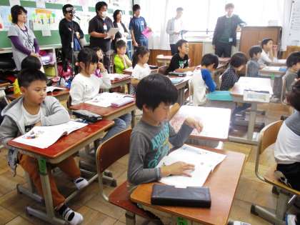 今日は,学校中の先生が授業を見に来てくれました。