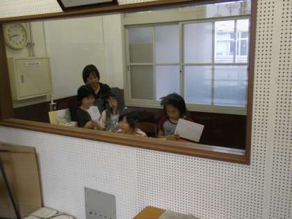 放送委員会の子どもたちとアジアクラブの子どもたちが協力して,お昼の給食放送を日本語・中国語・韓国語の3ヶ国語で生放送しています。