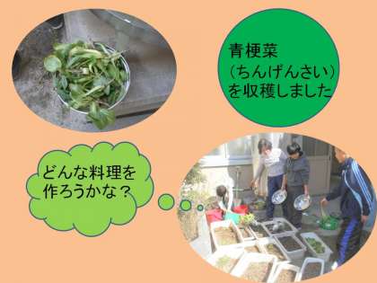昨秋に種をまいて,学習園で育てていた「青梗菜(ちんげんさい)」が大きくなり,今日,収穫しました。