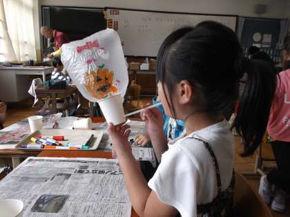 思い思いに絵を描いて,袋がふくらんで変化する様子を楽しんでいました。