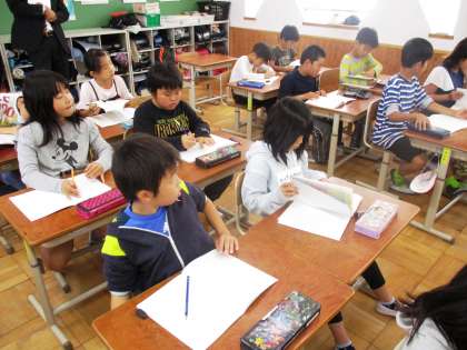 教育実習の先生の授業です。かけ算のじゅんじょをかえても答えは同じになるということを学習しました。みんなやる気満々です。
