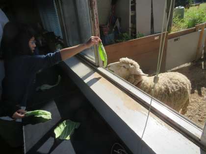 2組は「ヒツジのおくりもの」と題して羊毛(ウール)について学習しました。毛糸がどのようにできるのか。一頭の羊からどれだけの羊毛がとれるのか。ヒツジの特徴について。ウールの特徴について。など,たくさんのことを学習しました。ヒツジにエサをあげたり,ウールの繊維を顕微鏡で観察したり,新しい発見や体験もたくさんありました。