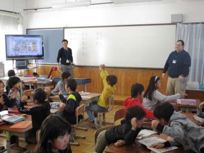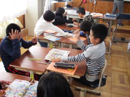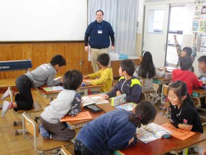 今日はALTのデイビッド先生が来てくださいました。発音を聞いて,アルファベットを当てるゲームをしました。盛り上がっています。