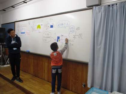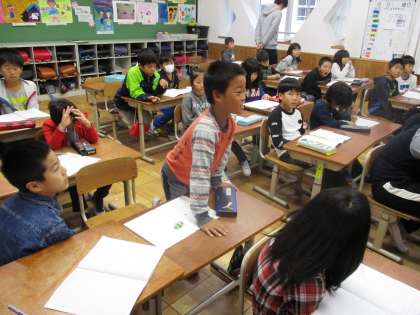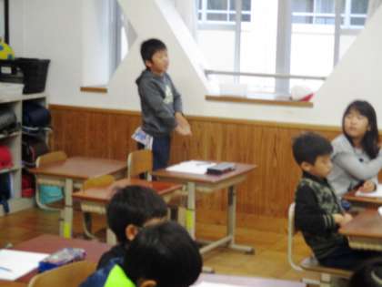 昨日のゲストティーチャー尾崎先生に教えていただいた続きの学習をしました。1mの4分の1と2mの4分の1。どちらも見た目は同じだけど…?みんなで考えています。