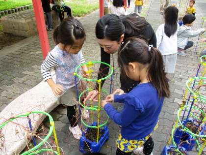 あさがおの種をとり,つるもとっています。からまってなかなかほどけずに苦戦しました。12月に向けてつるも大変身します。お楽しみに!