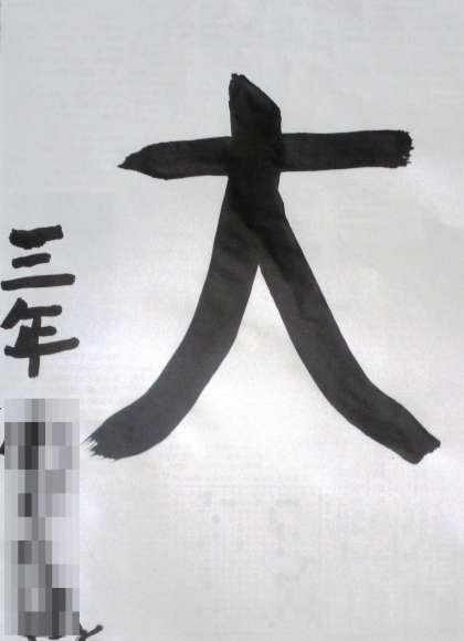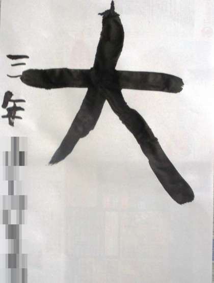 書写で『大』の字を書きました。左はらいと右はらいに気を付けて丁寧にかけました!