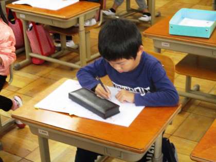 漢字の学習をしています。今日の漢字は『手』。「手くび」はここですね!