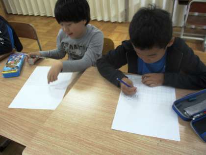 3年生と3くみで共同学習をしました。そのことについて作文を書いています。おにごっこなどをして楽しかったこと,仲良くなった友だちのことなどをうれしそうに書いていました。