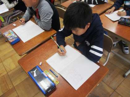 3けた×1けたの筆算の学習をしています。筆算の形にも少しずつ慣れて,意欲的に計算に取り組んでいます。