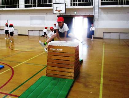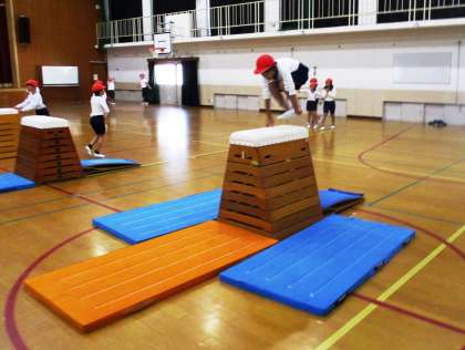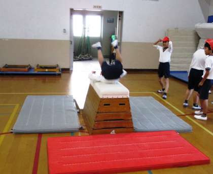 それぞれのめあてを持ってとび箱の練習をしています。8段の台上前転もできるようになっている人もいます。