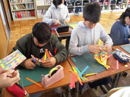 かごや仮面,コースターなど思い思いの作品を作っています。