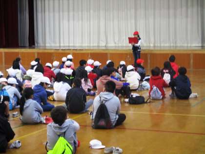 今日は,先週延期になりみんな楽しみにしていた,『たいようワクワクタイム』でした。まずは,9時から体育館に集まり開会式をしました。それぞれのグループで,まわる順番を決めてからフォトロゲラリーに出発です!!