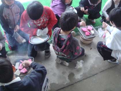 火加減を調節するのが難しかったですが,炭で焼いたおもちはとても美味しかったです。