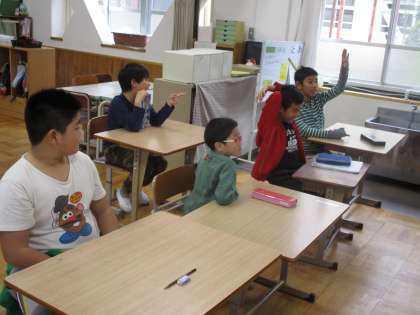 『ば・び・ぶ・べ・ぼ』のつくことばを探しています。高学年の人はたくさん思いつきますね。『ばんごはん』『ベーコン』…あれ?おなかがすいてきたかな?