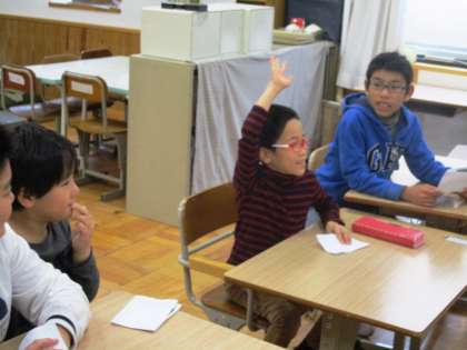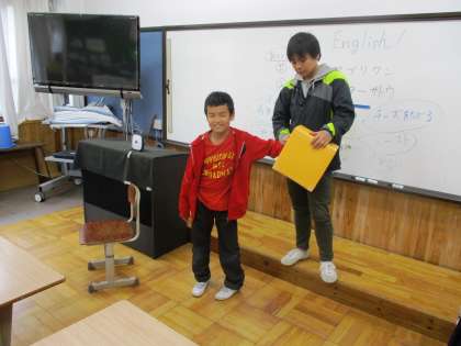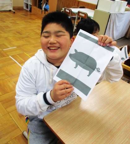 “What is this?”を使った活動をしました。動物のカードを見せて英語で答えられた人は1点!楽しく活動しています。
