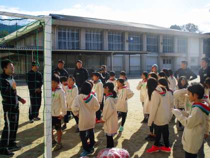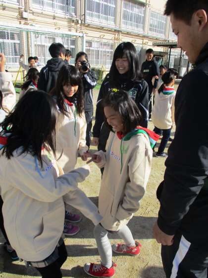 「武」の部では,運動場で『頭を使って身体を動かす』ことをテーマに,楽しい運動をいろいろしてくださいました。まずは,じゃじゃんけんを使った運動です。「ウエスタンじゃんけん」は,たし算やひき算など計算をしてどちらが早く言えるかで勝敗が決まります。