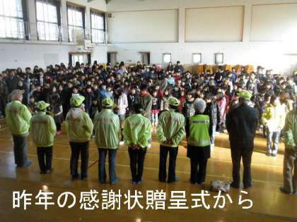 本日3月7日(月)の朝会で,毎日子どもたちの安全を守っていただいている「子ども見守り隊」の皆様に来ていただき,日頃の感謝の気持ちをこめて,感謝状の贈呈式をします。
