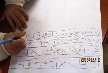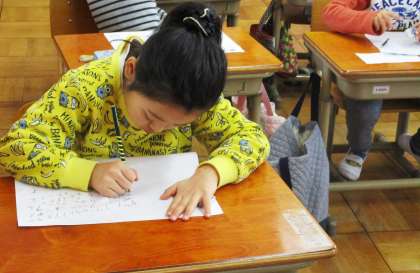 カタカナのふりかえりをしています。少しずつ覚えられてきたかな?早くできた人は,カタカナを使った言葉を見つけてどんどん書いています。みんなやる気満々です!