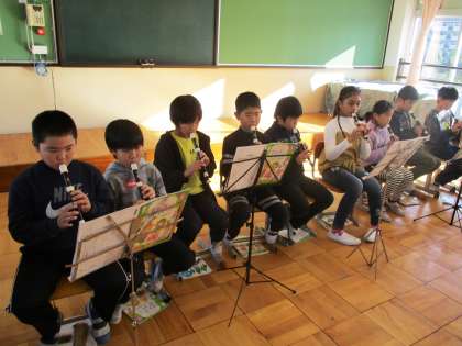 『にわとりポルカ』などリコーダーの演奏をしています。