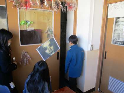 6年1組がお楽しみ会としてお化け屋敷を作りました。今日は1年生,2年生,4年生を招待しました。怖くて入れない子もいました。