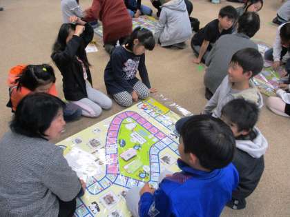 お話を聞いた後は,エコすごろくをして楽しみました。女性会の方々もありがとうございました。