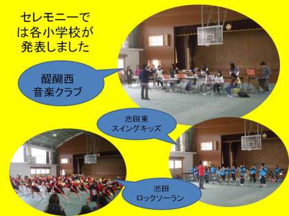ゴミ拾い終了後,体育館ではセレモニーが開かれました。その場で,今年も3小学校の発表がありました。