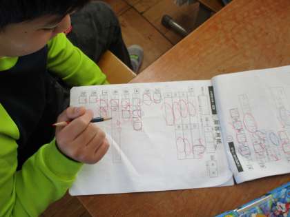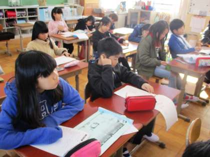 みんながんばって取り組みました。今日は答え合わせをしています。