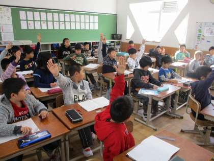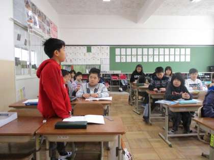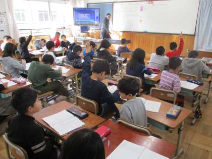 問題場面からどんな計算をすれば答えが導き出せるのかを考えています。たくさん手が上がり,みんながしっかりと自分の考えをもつことができています。