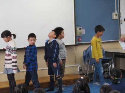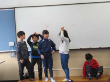 久しぶりということで,もう一度各グループで自己紹介をし合いました。そして,前回も好評だったジェスチャーゲームをしてアイスブレイクです。