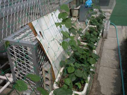 「緑のカーテン」ツルがのびてきました。