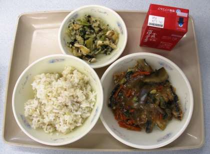 今日の献立は,麦ごはん,牛乳,さんまの野菜あんかけ,小松菜と切り干し大根の煮びたしでした。『さんまの野菜あんかけ』は新献立です。調理員さんが心を込めて作ってくれた給食を,おいしくいただきました!