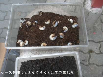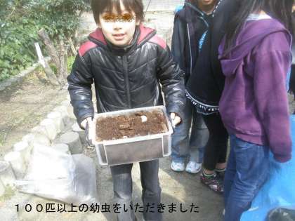 地域のゴミ減量推進会議の皆さんが,わざわざ滋賀県マキノまで出向いてカブトムシの幼虫をたくさんもらってきていただきました。