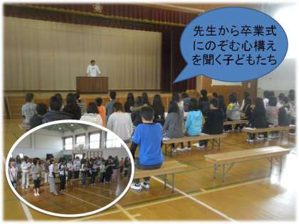 当然のことですが,声の大きさ,間合いはまだまだです。今日の出来栄えは100点満点で10点ぐらいかな?厳しいようですが,卒業式は独特の雰囲気の中でおこなわれますので,いいかげんにはできません。