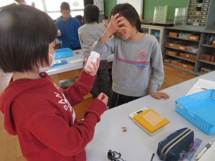5年生は現在「もののとけ方」の学習をしています。「ものが水に溶けるとはどういうことか。」を定義づけした後,溶けて見えなくなった‘もの’はどうなったのかを考えました。「溶かす前の水と食塩の重さ」と「食塩を溶かした後の水溶液の重さ」を比べ,見えなくなったけど,水に溶かした食塩は水の中に存在することが分かりました。