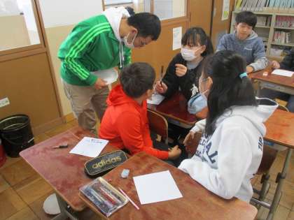 卒業制作でサンドブラストの下書きをしています。工夫をこらしたデザインになっています。素敵な思い出ができるといいですね。