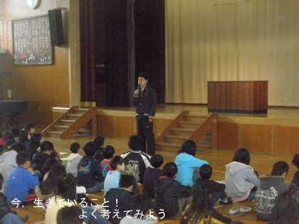 今朝,1校時に児童集会がありました。今年度最後の児童集会は,先生の1分間スピーチでした。