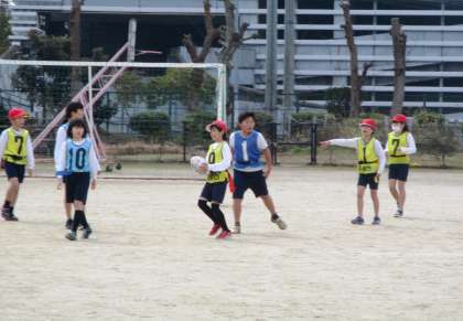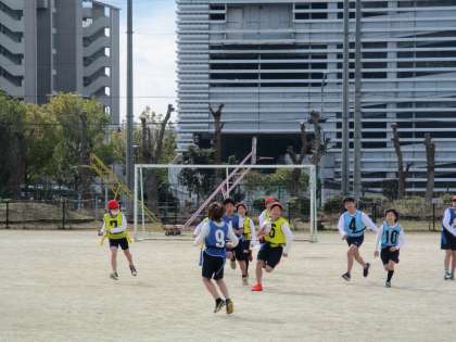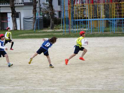 寒い1日ですが,元気にタグラグビーに取り組んでいます。