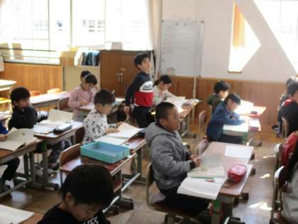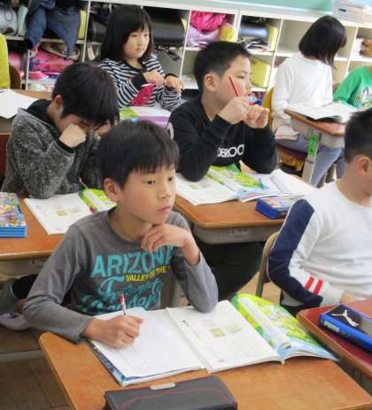 『漢字の広場』で習った漢字を使って文章を作ります。絵を見ながらどんな文章ができるかな。主語と述語をしっかり使えるように確認しました。