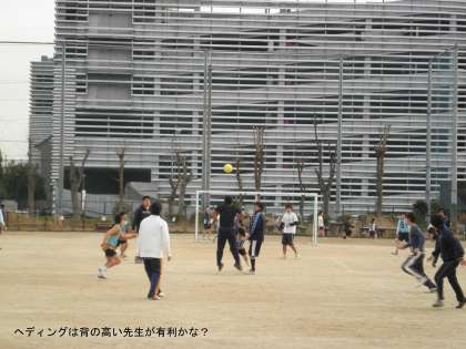サッカー部の6年生は人数が多く,どんどん交代して試合にのぞみます。一方,先生チームは,交代要員がいなくフル出場です。そして,サッカー経験者の先生は審判に回っているので,先生チームは少し不利な条件でした。