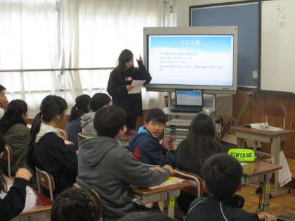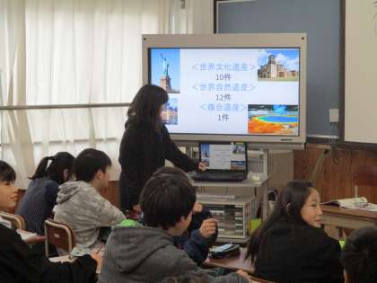 日本とつながりの深い中華人民共和国,大韓民国,アメリカ合衆国,サウジアラビアについて調べ,プレゼンテーションにまとめた内容を発表しました。クイズ形式にするなど,工夫した内容にまとめられていました。