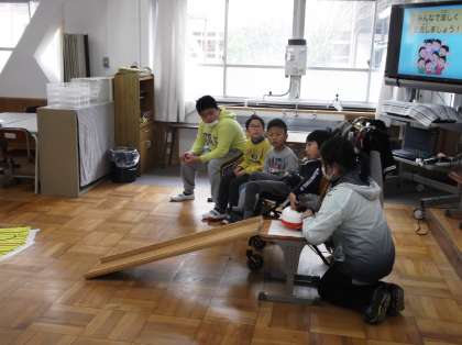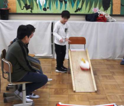 東総合支援学校のお友だちと交流しました。今日は,カーリングをして楽しみました。