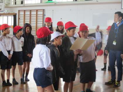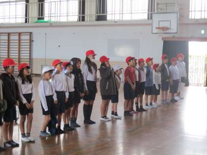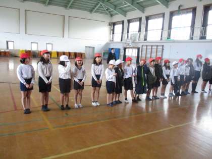 体育館で練習しました。6年生に喜んでもらえるといいですね。