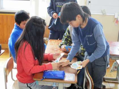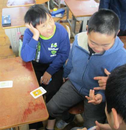 カードでゲームをしながら教科名や食べ物について学習しました。