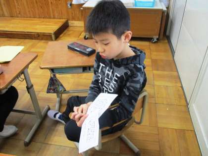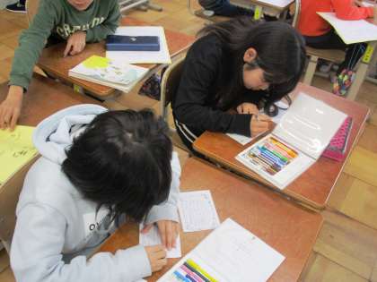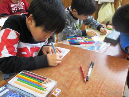 丁寧にメッセージカードを書いています。さすが3年生!しっかり素敵なカードになりましたね。