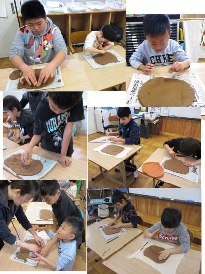 陶芸家の先生に来ていただいて,お皿を作りました。焼き上がりが楽しみですね。