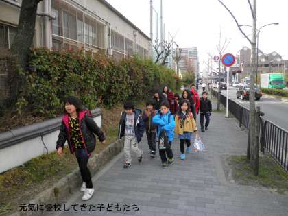 6年生がいないのが少しさみしいですが,新班長さんのもとで,子どもたちは元気に集団登校してきました。