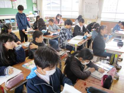 国連・ユニセフ・ユネスコについて調べてまとめたことを発表しています。