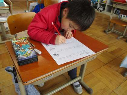 練習問題をしています。文章を読んでしっかり考えています。