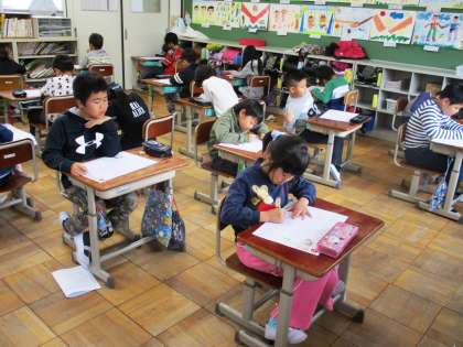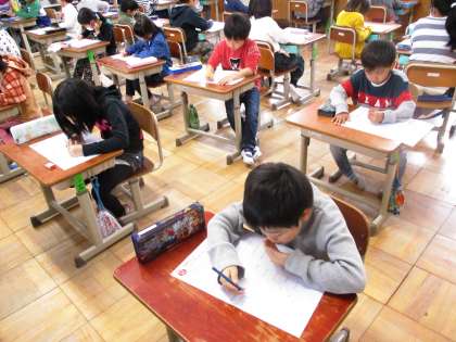 2年生で学習した漢字のまとめのテストをしています。しっかり覚えられているかな?